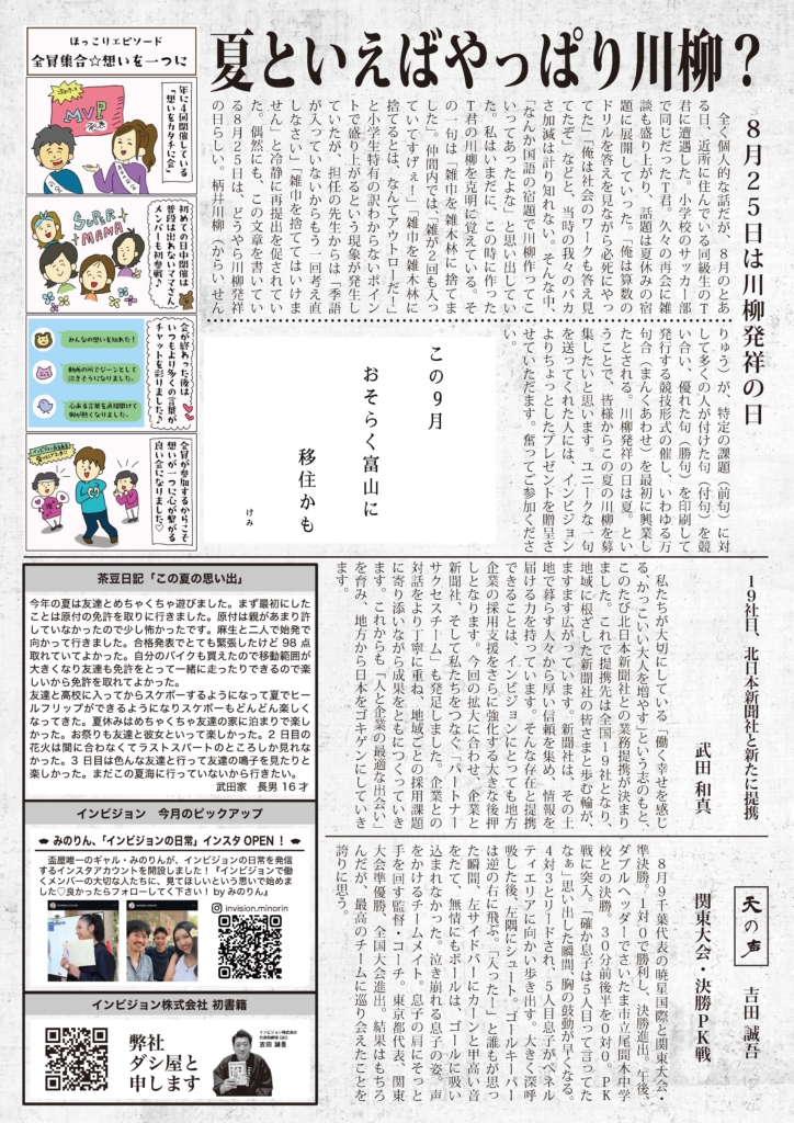インビジョン通信9月号発行しました