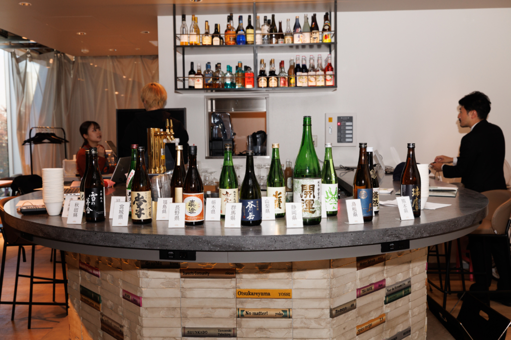 おダシフェスにはお酒が欠かせない。「HOW’z」さんのご厚意で参加する新聞社の地元の日本酒を用意いただいた。北は青森、南は熊本までおダシフェスより一足早く日本酒フェスが開催された。