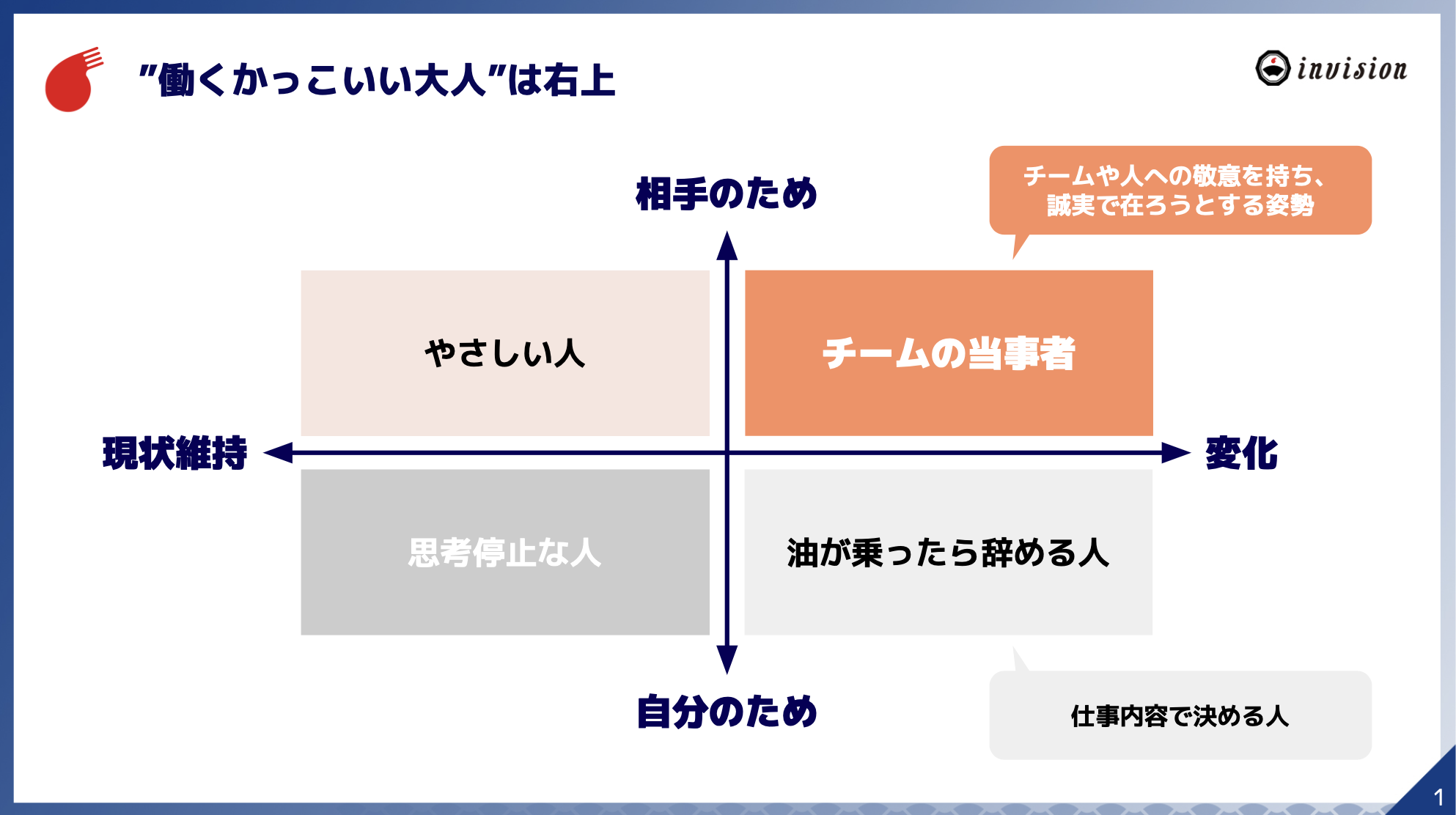 自走できる”右上”みたいな人。”誠実さ”は、成長の軸。